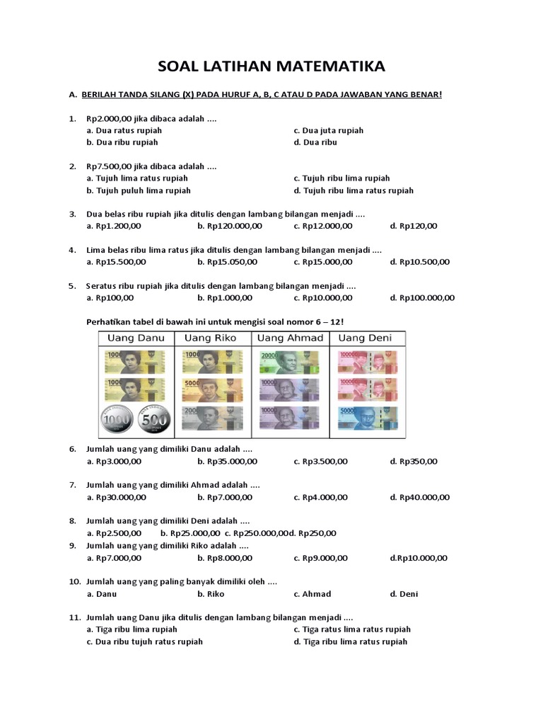 - Meningkatkan Kemampuan Berhitung: Soal-soal tentang uang secara alami melibatkan operasi hitung penjumlahan, pengurangan, perkalian, dan pembagian sederhana. Ini melatih kemampuan berhitung anak secara praktis.
